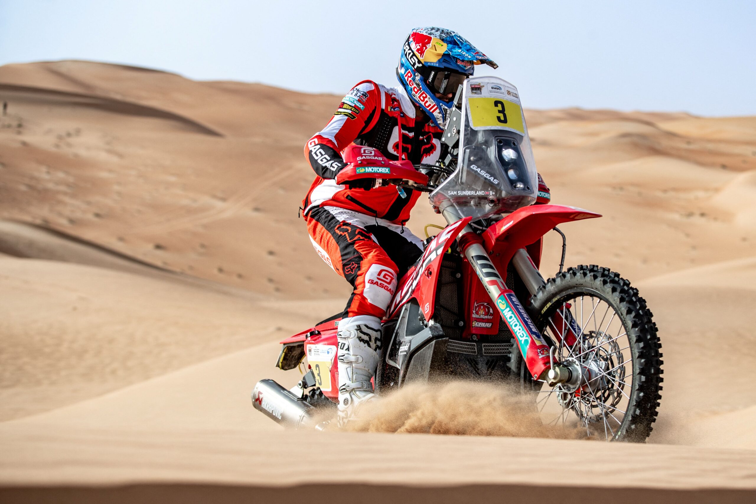 Pada saingan tersebut, Sunderland yang mewakili pasukan GasGas gagal mengawal motosikal yang ditunggang selepas terbabas pada kilometer ke-52 sekali gus terus diterbangkan ke Hospital Yanbu dengan menggunakan helikopter.