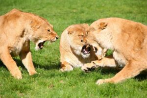 Singa betina akan kahwin atau berpasangan dengan banyak singa jantan agar anak-anak mereka tetap hidup.