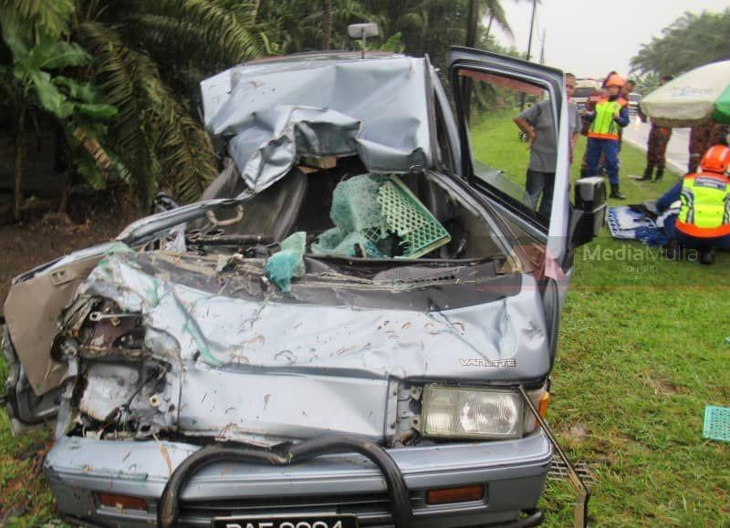 Keadaan Van Nissan Vanette yang remuk setelah terbabit dalam kemalangan dengan sebuah lori di Kilometer 6.1, Jalan Parit Sikom-Parit Panjang, Pontian kelmarin.