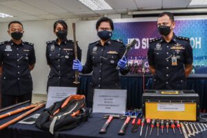 “Turut dirampas ialah sebatang besi sepanjang kira-kira 11 sentimeter yang digunakan untuk memecahkan cermin kenderaan mangsa,” katanya pada sidang akhbar di Ibu Pejabat Polis Daerah (IPD) Kangar di sini hari ini.