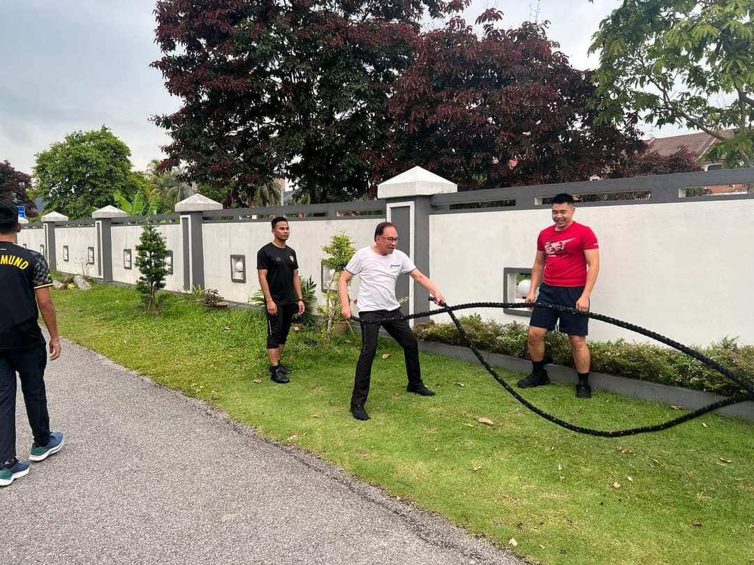 Menerusi hantaran gambar yang yang dimuat naik di akaun Facebook miliknya, Anwar dilihat melakukan aktiviti riadah seperti berlari dan senaman menggunakan ‘battle rope’.
