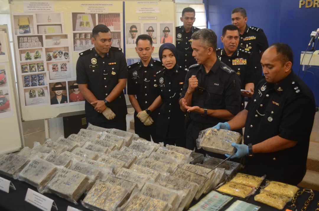 “Polis merampas dadah jenis heroin seberat 1.81 kilogram yang bernilai RM14,988 daripada mereka. Susulan penahanan kesemua suspek polis turut menyita wang tunai, motosikal, kereta dan barangan kemas yang kesemuanya bernilai RM96,324,” katanya kesemua suspek kini direman selama tujuh hari bagi membantu siasatan menurut Seksyen 39B Akta Dadah Berbahaya 1952.