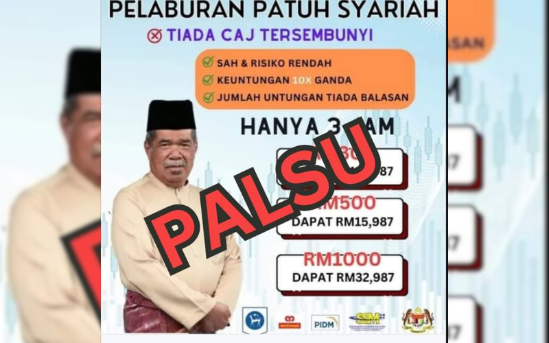 PUTRAJAYA – Menteri Pertanian dan Keterjaminan Makanan, Datuk Seri Mohamad Sabu sasaran sindiket pelaburan patuh syariah apabila wajah beliau dipaparkan pada poster promosi skim pelaburan itu.