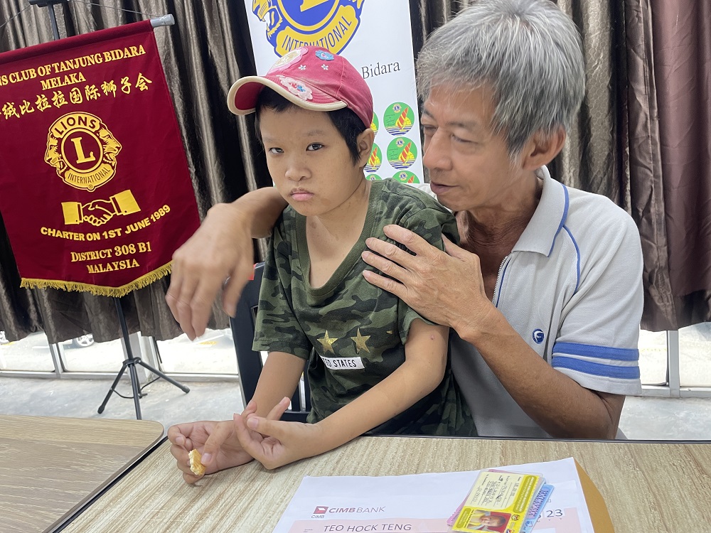 Turut bersama menyantuni dua beranak itu adalah Lion Club Tanjung Bidara yang menyerahkan sumbangan orang ramai kepada Hock Teng.