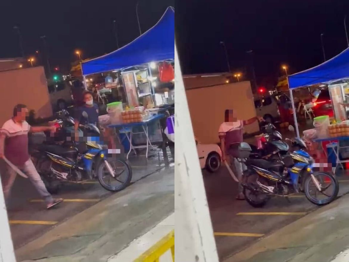 Insiden suspek yang mengacu parang kepada pembeli dan peniaga burger itu tular menerusi video berdurasi satu minit 24 saat.