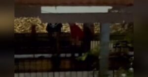 Mangsa cuba mengeluarkan lengannya dari kandang beruang itu, namun haiwan tersebut enggan melepaskannya.