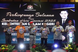 Dalam satu klip video berdurasi 10 saat, lelaki berkenaan melakukan aksi berbahaya itu ketika dia diekori oleh tiga anggota polis yang turut menunggang dua motosikal.