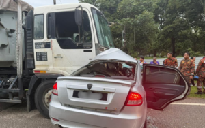 “Sebaik tiba di lokasi kejadian, Toyota Alphard itu dipercayai memasuki jalan bertentangan dan telah bergesel dengan sisi kanan lori dipandu seorang lelaki berusia 43 tahun.
