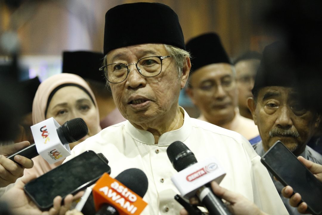 Abang Johari bercakap kepada pemberita ketika ditemui selepas menyempurnakan Majlis Ramah Tamah Aidilfitri 2024 Daerah Simunjan di Dewan Mesra Simunjan, hari ini.