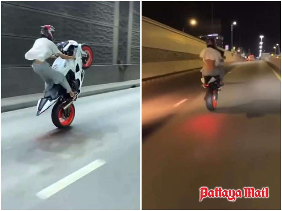 BANGKOK – Perbuatan seorang penunggang motosikal berkuasa tinggi melakukan aksi berbahaya dikenali sebagai ‘wheelie’ di sebuah lebuh raya dikecam netizen selepas video mengenainya tular di media sosial, lapor portal berita Pattaya Mail hari ini.