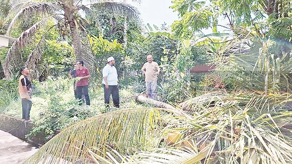 Penduduk melihat tanaman kelapa dan pisang yang dirosakkan gajah di Kampung Gol, Jerantut semalam.