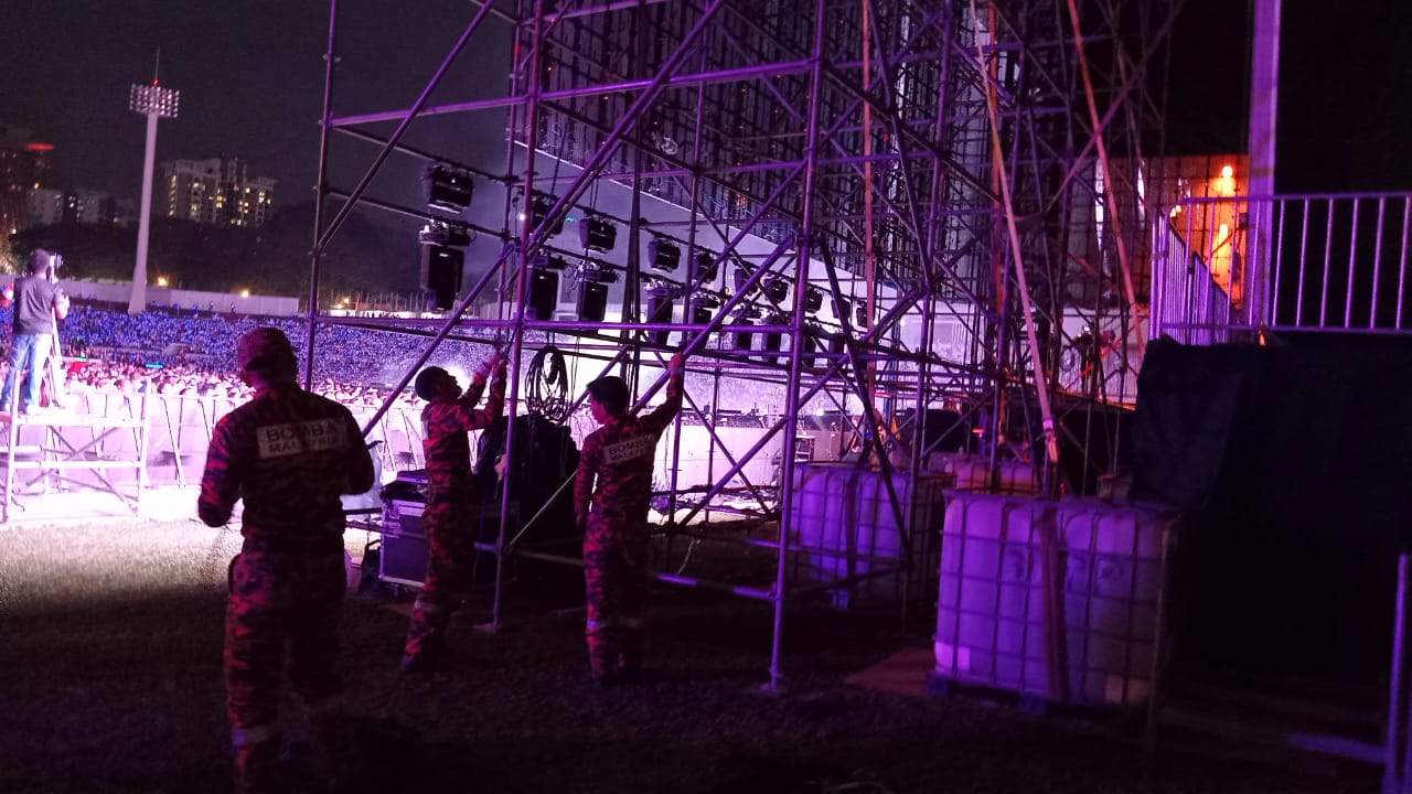 Menurut Komander Operasi PBK II, Mokhtar Ramli, kebakaran itu melibatkan kotak bunga api yang diletakkan di atas perancah (scaffolding) di belakang skrin latar belakang.