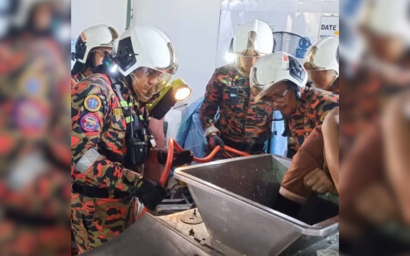 “Ketika tiba di lokasi, didapati seorang mangsa lelaki warga Myanmar berusia 21 tahun telah tersepit tangan kanan pada mesin pengisar gula batu.