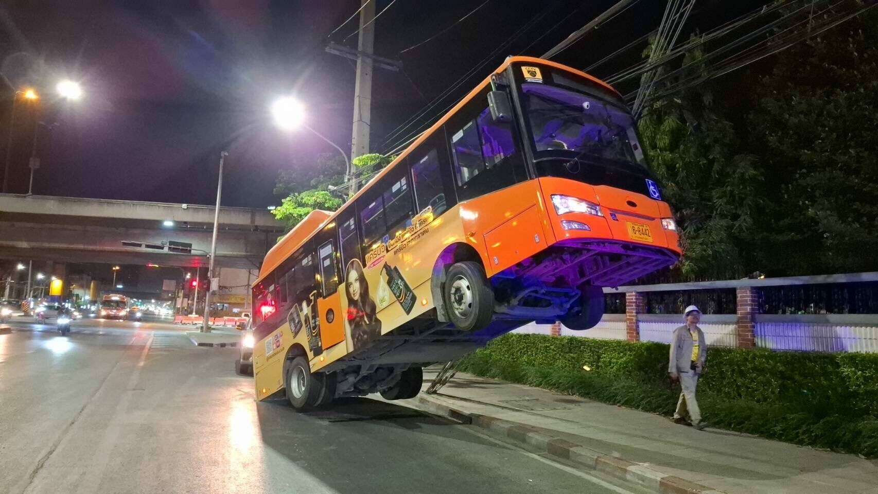 BANGKOK – Sebuah bas awam terjongket setinggi 3 meter di bahagian hadapan akibat tersangkut pada kabel elektrik bervoltan tinggi, lapor laman berita Thaiger hari ini.