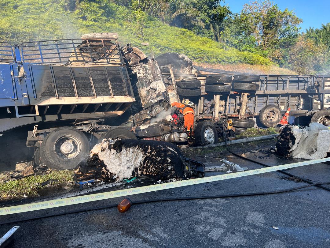TAPAH – Dua beranak rentung dalam nahas membabitkan dua lori di Kilometer 331.8 Lebuh Raya Utara-Selatan arah Utara berhampiran kawasan Rehat dan Rawat (R&R) Tapah di sini pagi tadi.