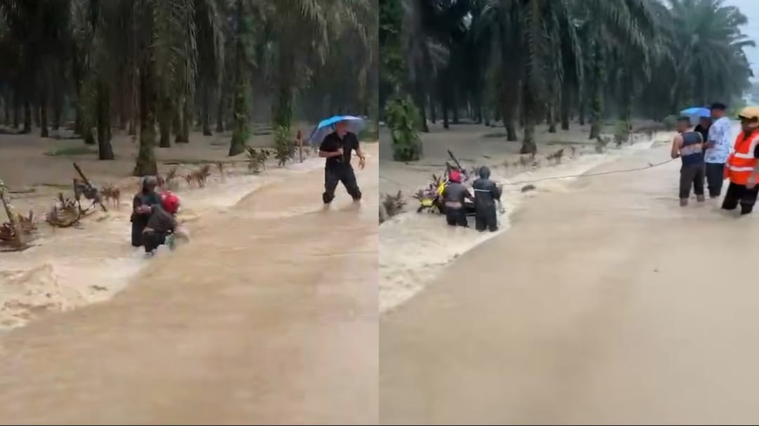 Terdahulu, tular rakaman penduduk membantu menarik motosikal milik warga emas yang nyaris dihanyutkan arus deras dalam keadaan banjir kilat.