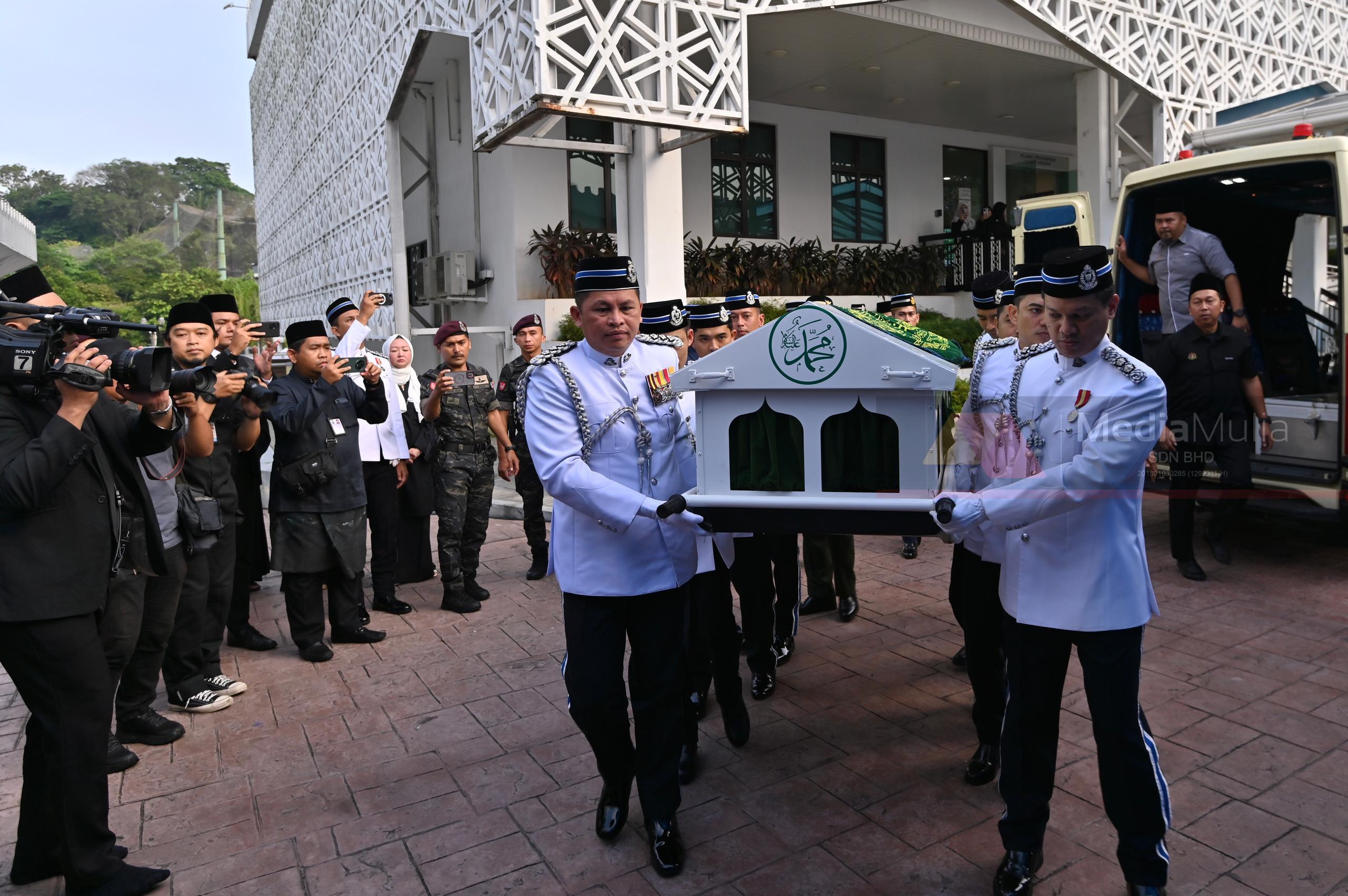 Jenazah Allahyarham akan diberikan penghormatan terakhir di Dewan Solat Utama Masjid Negara bermula pukul 11 pagi hingga 1 tengah hari.