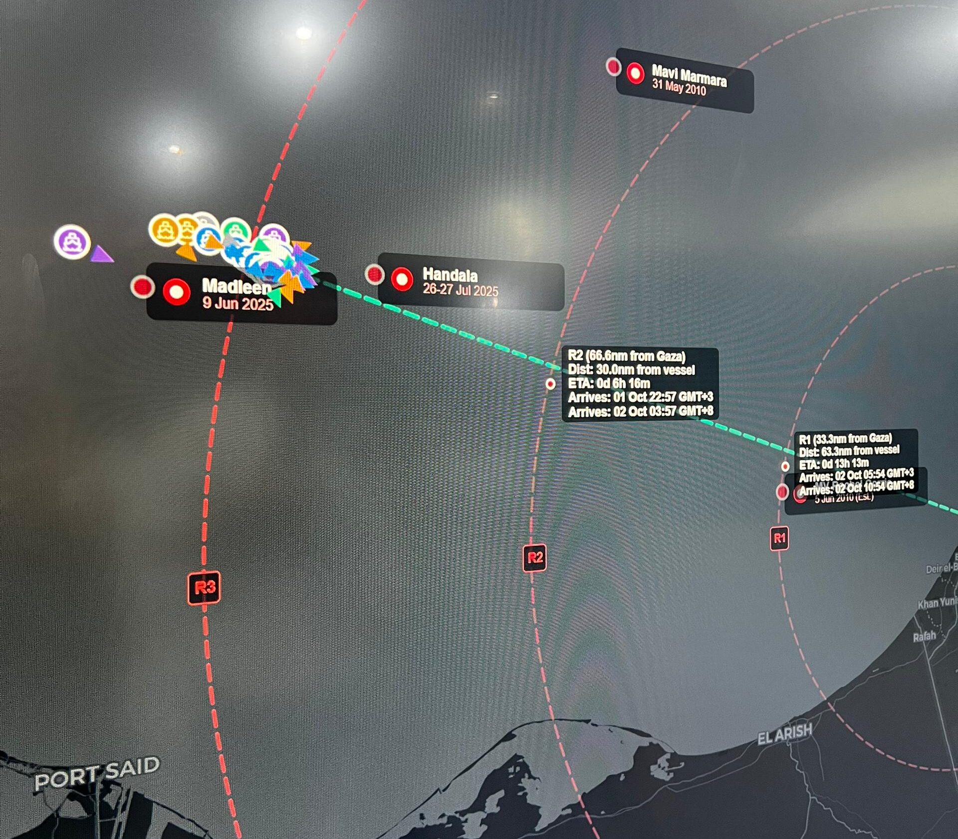 Ketua Pengarah Pusat Kawalan Sumud Nusantara (SNCC) Datuk Dr. Sani Araby Abdul Alim Araby berkata, kapal itu bergerak pada kelajuan kira-kira 5.5 knot dan mendahui kapal lain.