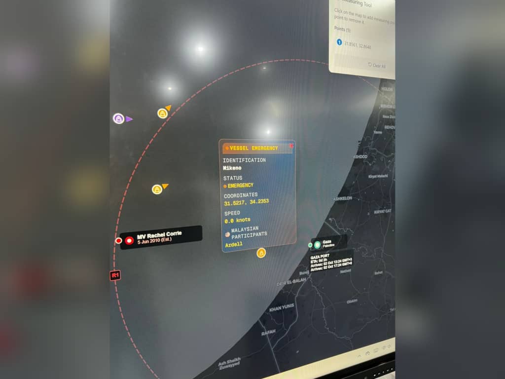 Berdasarkan tinjauan Kosmo! pada paparan terkini sistem Tracker Untuk Sumud Nusantara, kapal Vangelis Pissias- Asser et Ayssel bergerak dengan kelajuan 6.6 knot menuju ke destinasi jauh dari pesisir Gaza.