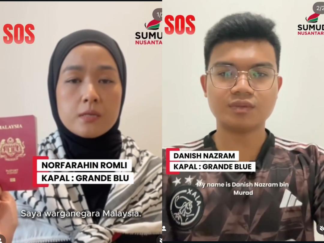 Dua peserta tersebut dari kapal Grande Blu adalah aktivis kemanusiaan dan pempengaruh, Farah Lee atau nama sebenarnya Nurfarahin Romli dan Danish Nazram.
