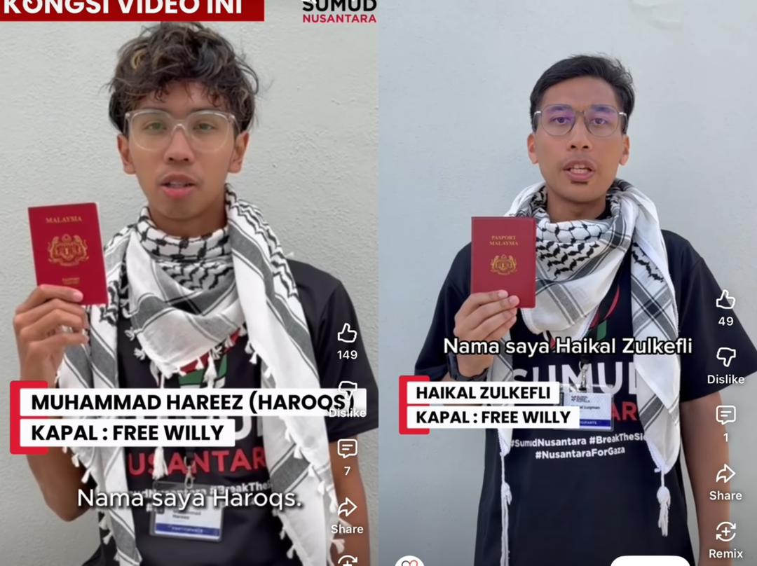 Sementara itu di kapal Alma, tiga peserta Malaysia iaitu Iylia Balqis, Musa Nuwayri dan Sul Aidil juga memuat naik video mesej kecemasan yang sama.
