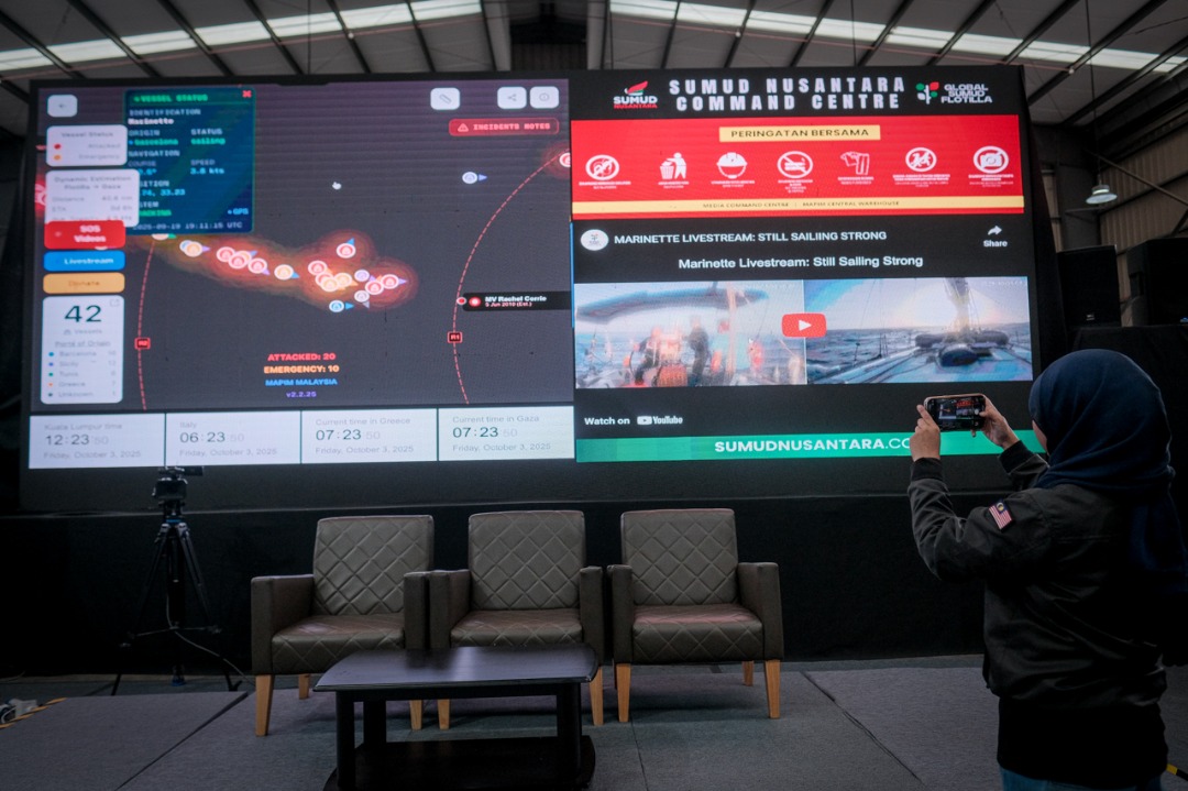 Mengikut paparan skrin tu, kapal Marinette kini berada kira-kira 80 batu nautika dari Gaza dan 10 batu nautika dari lokasi Israel mula memintas bot lain dalam flotila terbabit.