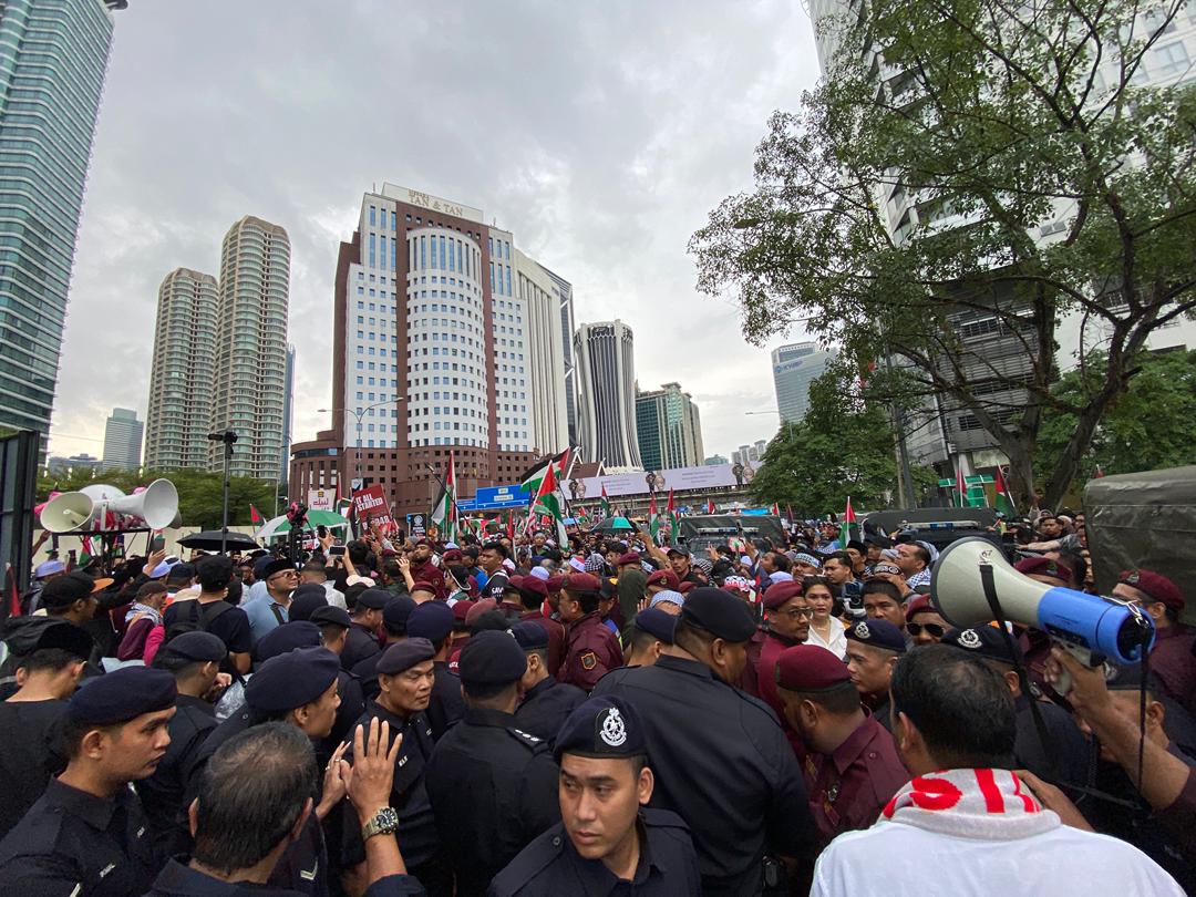 KUALA LUMPUR – Himpunan Sumud Flotilla (HSF) yang berlangsung di ibu negara bertukar tegang apabila peserta tidak dibenarkan berkumpul di hadapan Kedutaan Amerika Syarikat (AS), di sini hari ini.