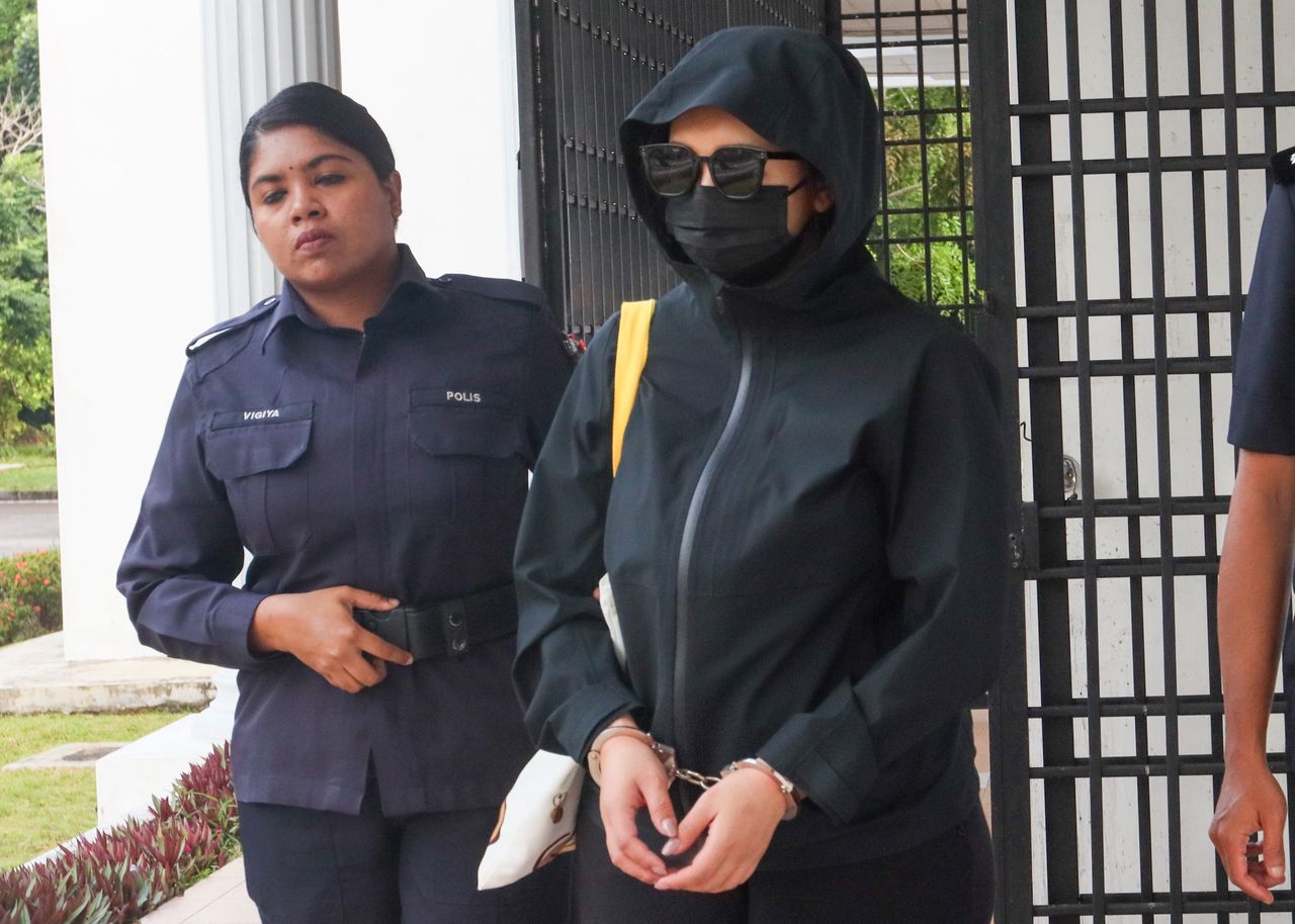 Tertuduh (kiri) ketika dibawa ke Mahkamah Sesyen Balik Pulau, hari ini. Foto oleh DANIAL SAAD/KOSMO!