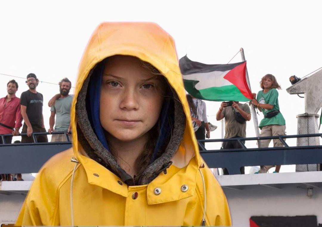 Greta, yang terkenal dengan keberaniannya memperjuangkan isu perubahan iklim di peringkat antarabangsa turut bersama lebih 400 sukarelawan seluruh dunia menyertai misi GSF sebagai tanda solidariti terhadap rakyat Palestin. – KOSMO! ONLINE