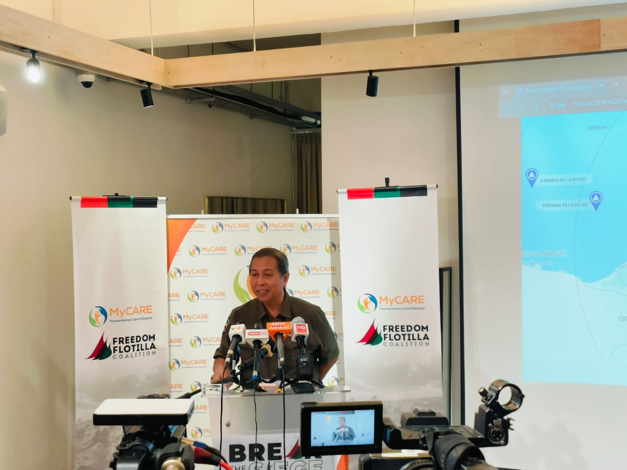 “Kapal Conscience membawa lapan delegasi Malaysia akan meneruskan pelayaran dengan knot perlahan untuk belayar seiring dan bergadung dengan lapan kapal lain memasuki zon kuning,” katanya pada sidang media di Ibu Pejabat MyCare di sini hari ini.