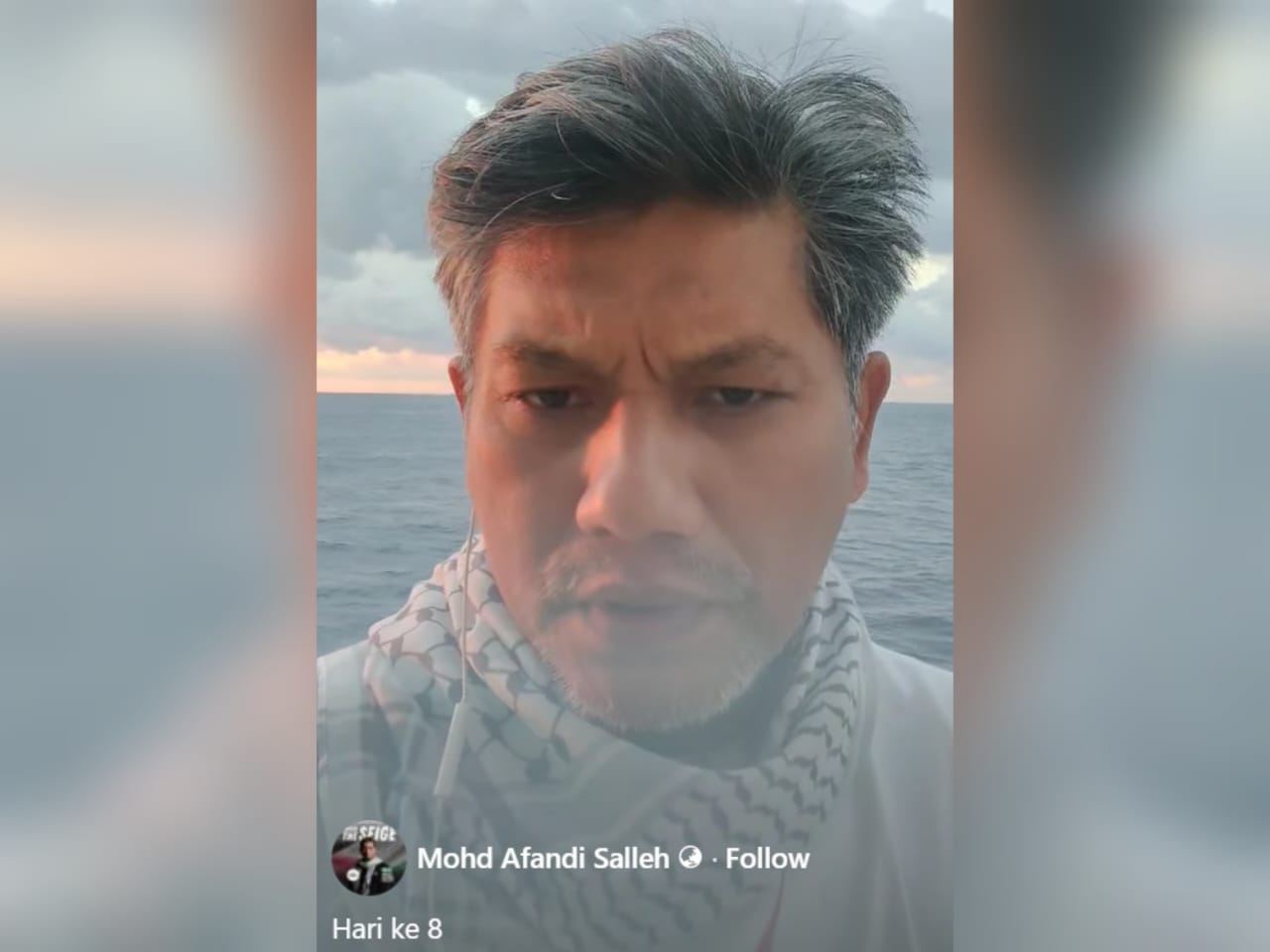 Tangkap layar video Mohd. Afandi yang menaiki kapal Conscience berkongsi perkembangan terkini misi FFC x TMTG.