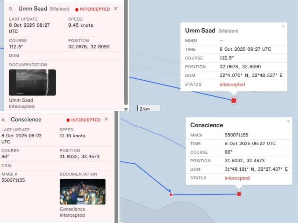 Ketua Pegawai Eksekutif Humanitarian Care Malaysia (MyCare), Kamarul Zaman Shaharul Anwar berkata, berdasarkan maklumat terkini, kapal yang membawa para sukarelawan kini sedang dikawal oleh tentera Israel menuju ke Pelabuhan Ashdod dengan kelajuan sekitar 10 hingga 11 knot.