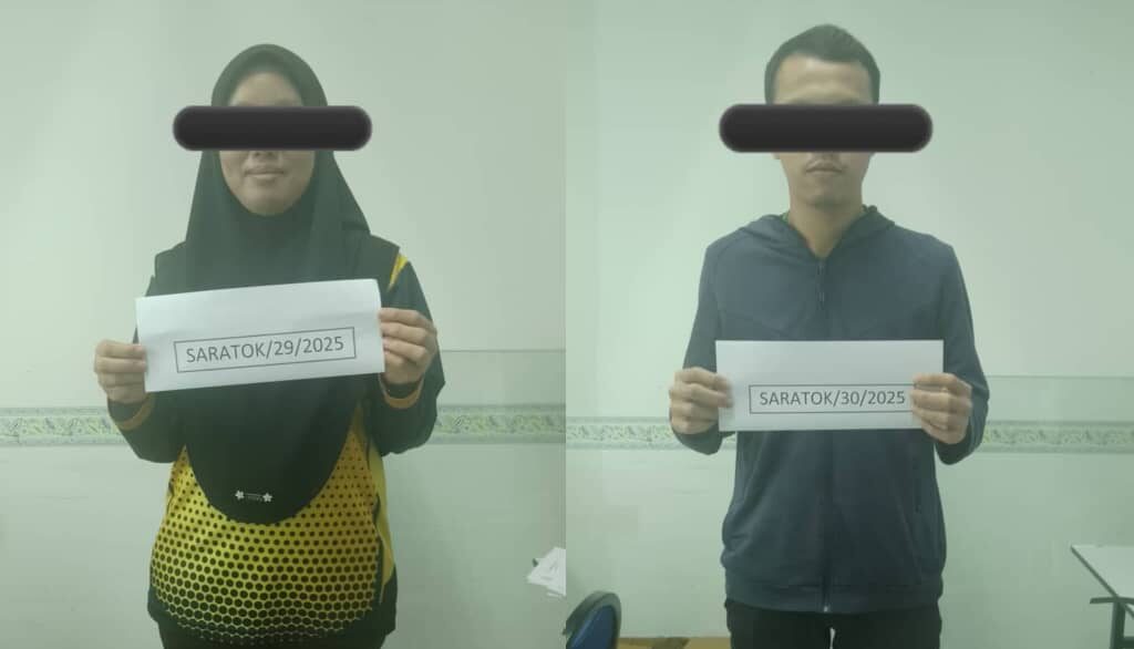 Ketua Polis Daerah Saratok, DSP Mathew Manggie berkata kedua-dua suspek dicekup di Kota Samarahan menerusi Op Kesan yang dijalankan oleh Ibu Pejabat Polis Daerah (IPD) Saratok, semalam.