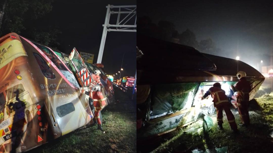 Dalam kejadian kira-kira pukul 3.15 pagi itu, seorang lelaki berusia 59 tahun disahkan meninggal dunia di lokasi kejadian manakala 28 penumpang termasuk pemandu mengalami kecederaan.