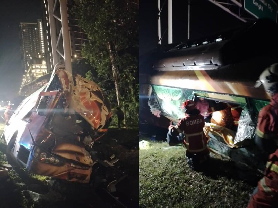Seorang maut, 18 cedera, bas ekspres terbabas langgar papan tanda