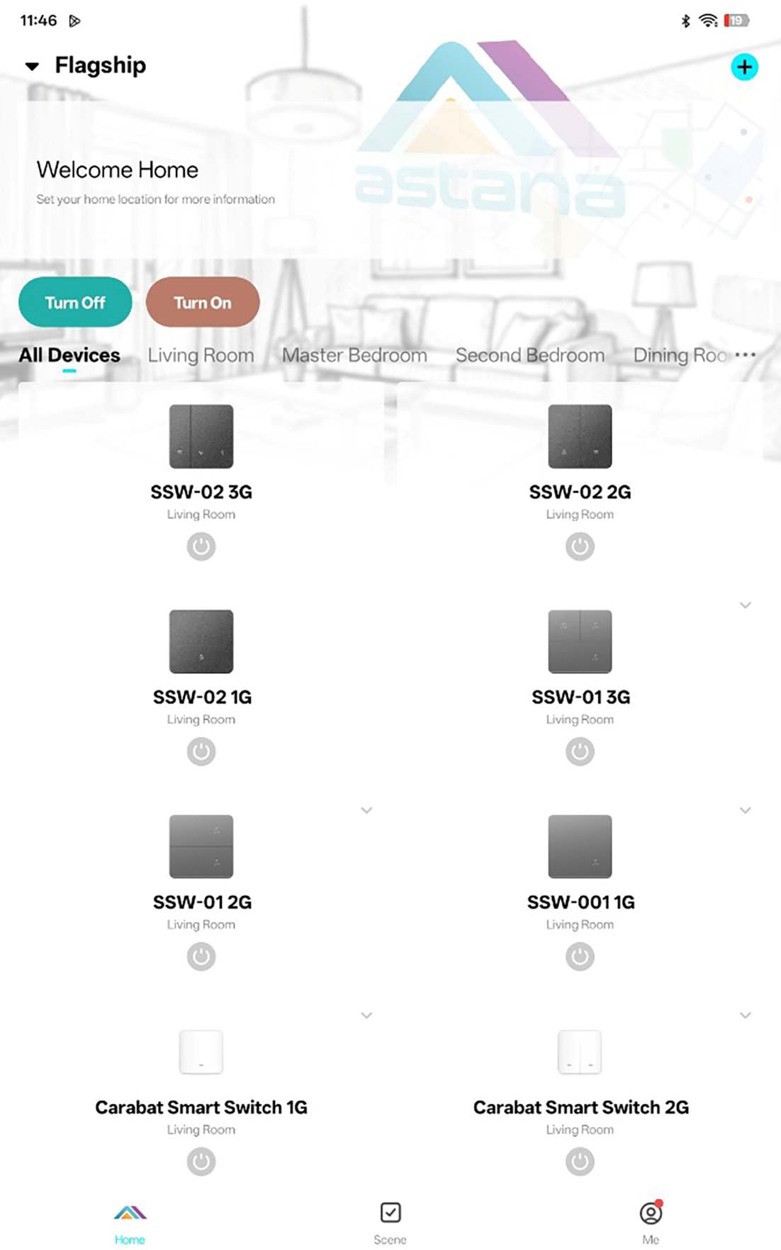 Astana App bertindak sebagai aplikasi utama yang menyatukan kesemua aplikasi-aplikasi yang diguna pakai bagi produk-produk jenama berbeza dalam kediaman.