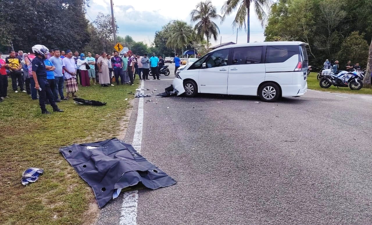 BESUT – Dua pelajar tingkatan satu Sekolah Menengah Kebangsaan (SMK) Permaisuri Nur Zahirah, di sini yang dalam perjalanan sekolah maut selepas motosikal dinaiki mereka terlibat dalam kemalangan dengan sebuah kenderaan pelbagai guna, Nissan Serena di Jalan Bukit Kluang di sini hari ini.
