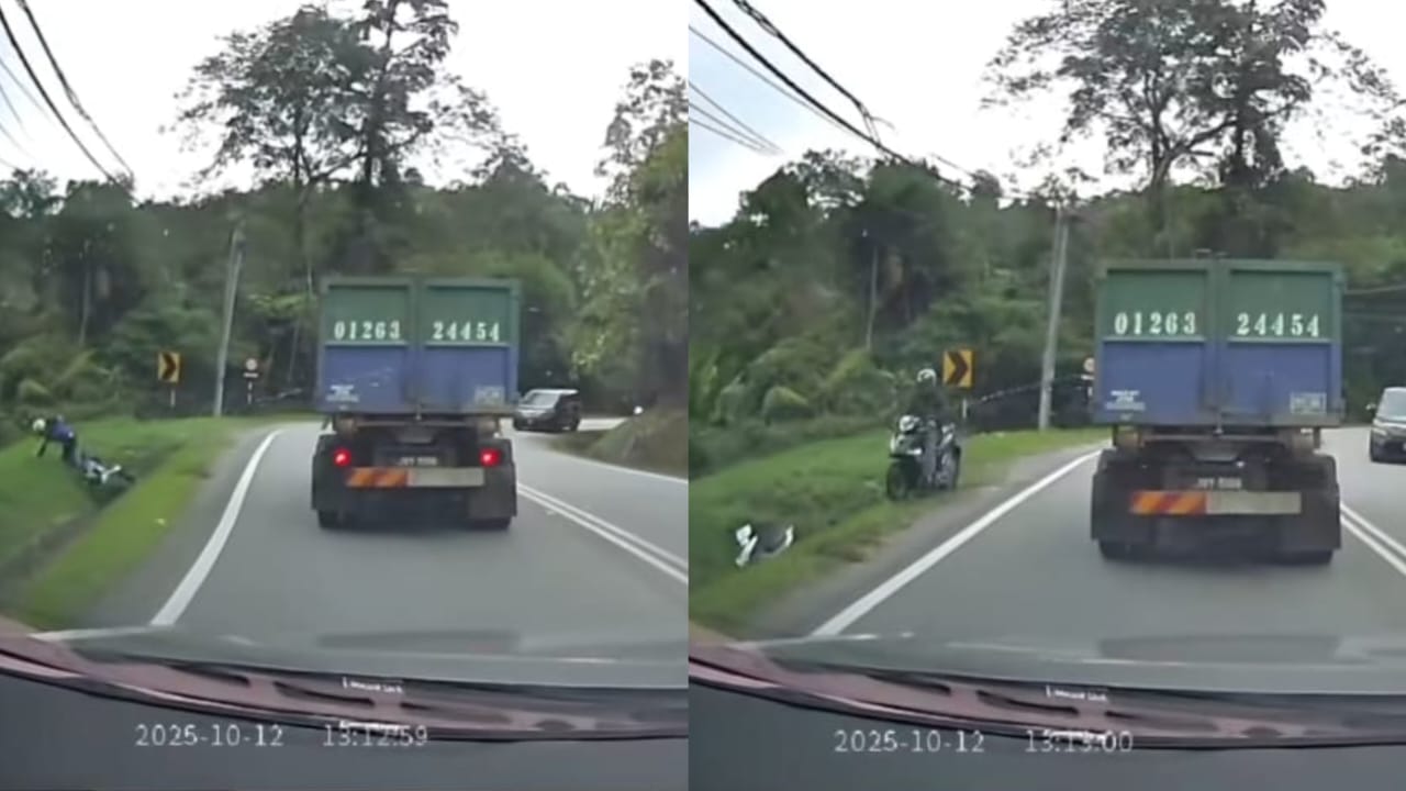 PETALING JAYA – “Ini baru kawan sejati, sakit sama-sama,” itu antara reaksi orang ramai apabila melihat dua penunggang motosikal terjatuh selepas tidak sengaja memasuki jalan berlawanan arus kerana mengelak lori di Cameron Highlands.