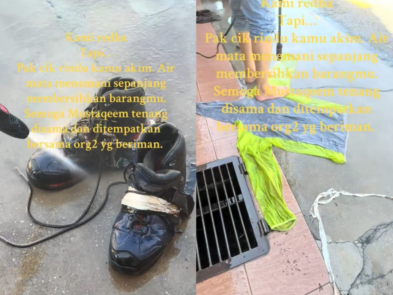 PETALING JAYA – Pakaian, kasut dan beg digunakan oleh Allahyarham Mustaqqeem Mansoor semasa mendaki Gunung Liang serta dibersihkan oleh bapa saudaranya mengundang sebak dalam kalangan pengguna media sosial.