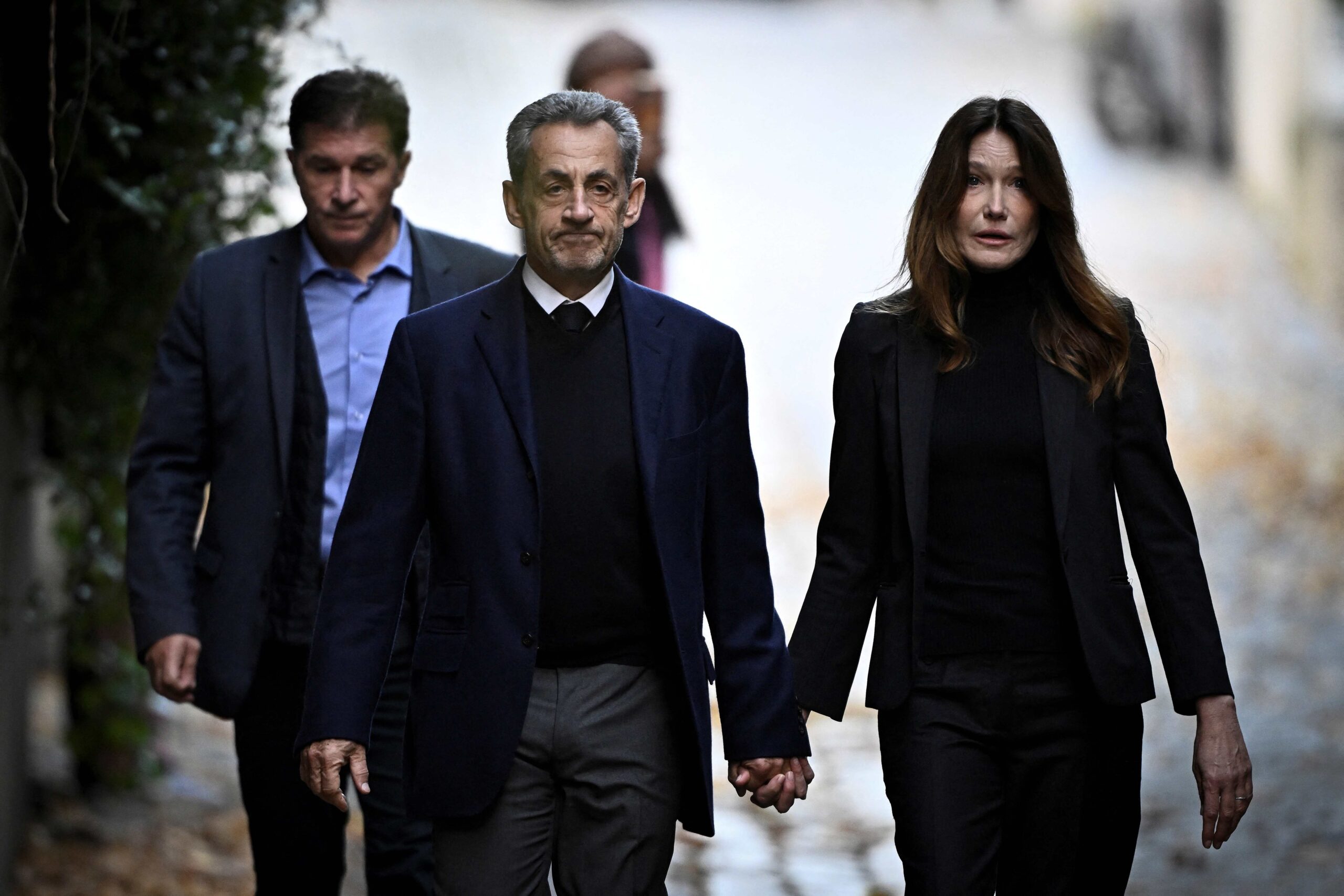 Beliau keluar dari rumahnya sambil berpegangan tangan dengan isteri, Carla Bruni dan menaiki kereta diiringi konvoi polis bermotosikal.