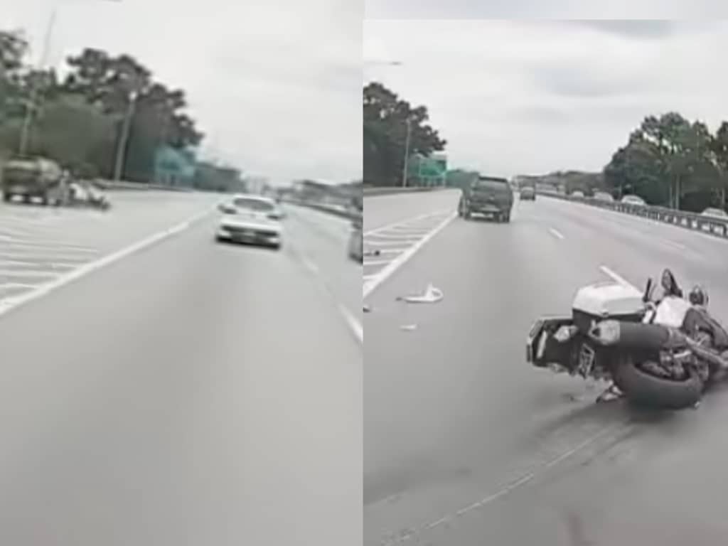 Sebelum itu, tular satu rakaman video memaparkan motosikal anggota polis berkenaan dilanggar sebuah Toyota Hilux di laluan kiri lebuh raya terbabit. – KOSMO! ONLINE