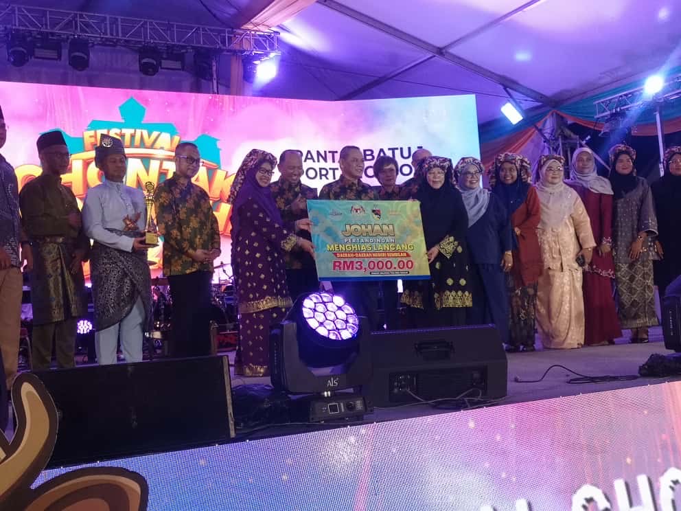 AMINUDDIN (tengah) menyampaikan hadiah tempat pertama kepada peserta yang memenangi Pertandingan Hiasan Lancang pada Festival Ghontak Nogoghi 2025 di Port Dickson semalam. – NUR SHARIEZA ISMAIL