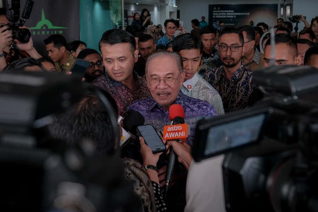 Anwar ditemui pemberita selepas melancarkan Malaysia Semikonduktor IC Design Park 2 di Cyberjaya hari ini. - Foto oleh FAIZ ALIF ZUBIR/KOSMO!