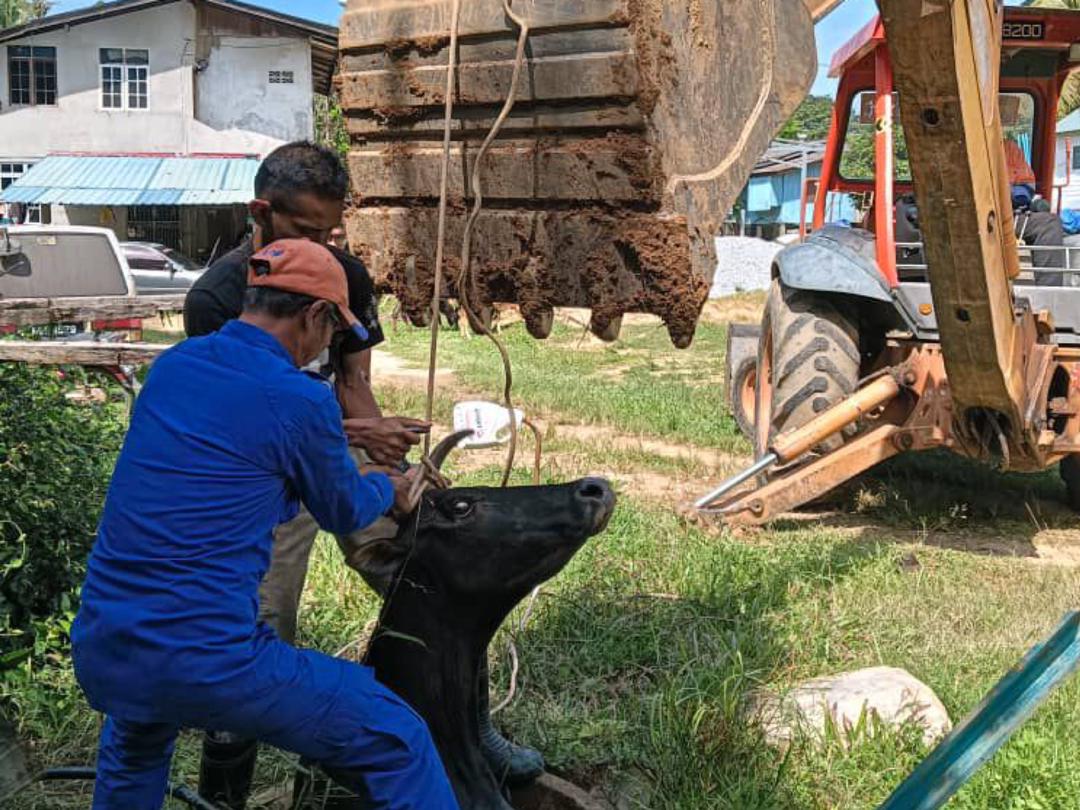 Menurutnya, kerja-kerja menyelamat lembu itu selesai dalam masa 10 minit dengan dibantu penduduk kampung. – KOSMO! ONLINE
