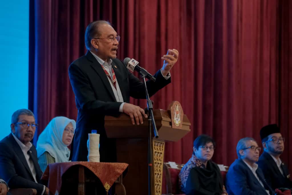 Anwar hadir pada Majlis Perjumpaan Bersama Warga Jabatan Perdana Menteri (JPM) Bagi Bulan November 2025 di Dewan Seri Endon, Puspanitapuri di Putrajaya hari ini. Foto oleh FAIZ ALIF ZUBIR/KOSMO!