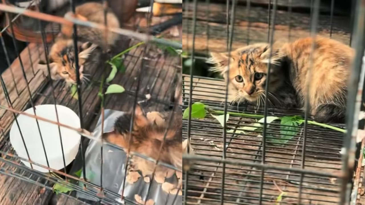 Lelaki tersebut menggunakan sangkar untuk menangkap kucing-kucing yang berada dalam ketakutan itu.