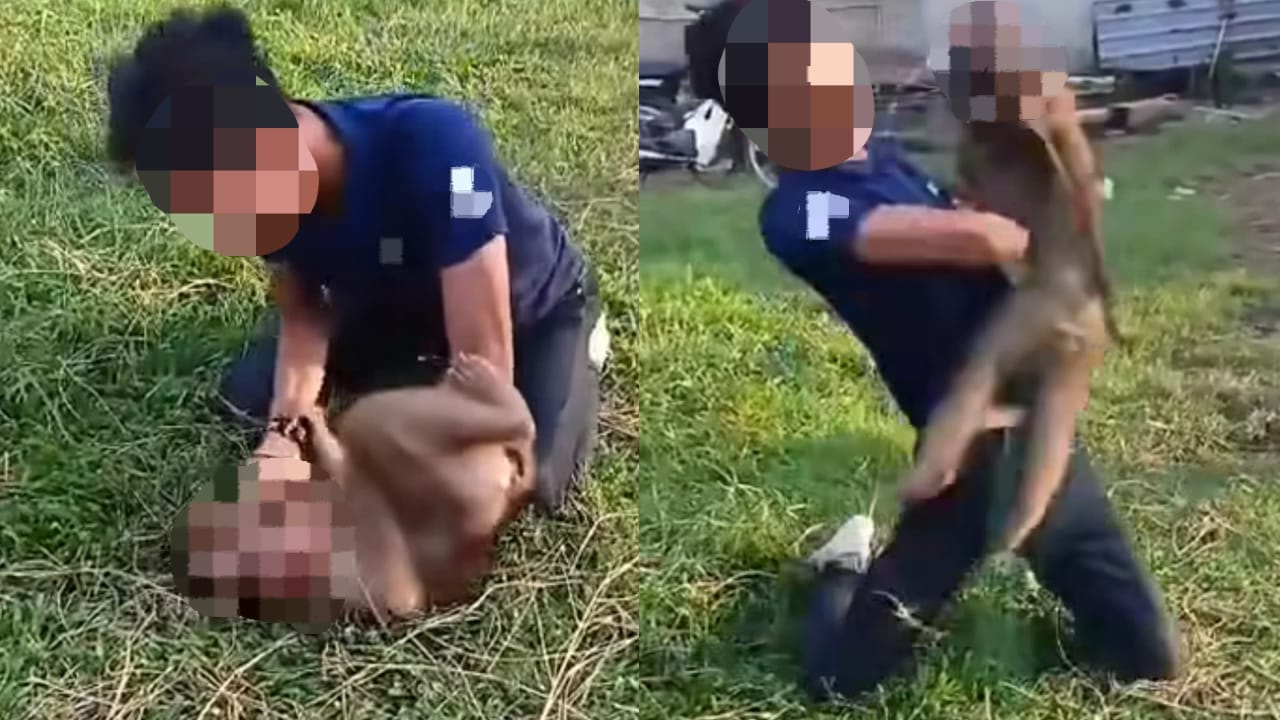 Difahamkan, lelaki berkenaan turut mengheret haiwan itu sebelum mengangkat dan menghempasnya ke tanah, manakala rakan-rakannya pula ketawa tanpa sedikit pun berusaha menghentikan tindakan ganas tersebut.