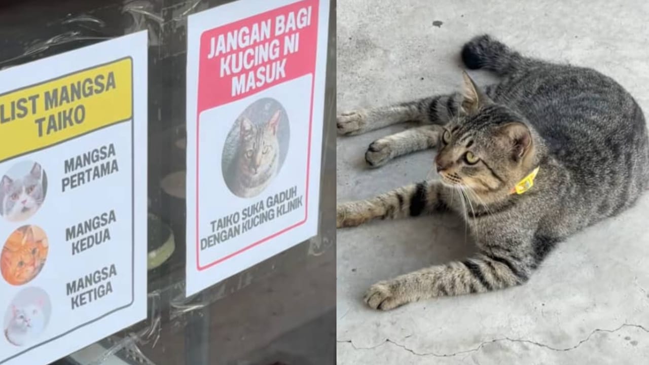 PETALING JAYA – “Jangan bagi kucing ini masuk. Taiko suka gaduh dengan kucing klinik”