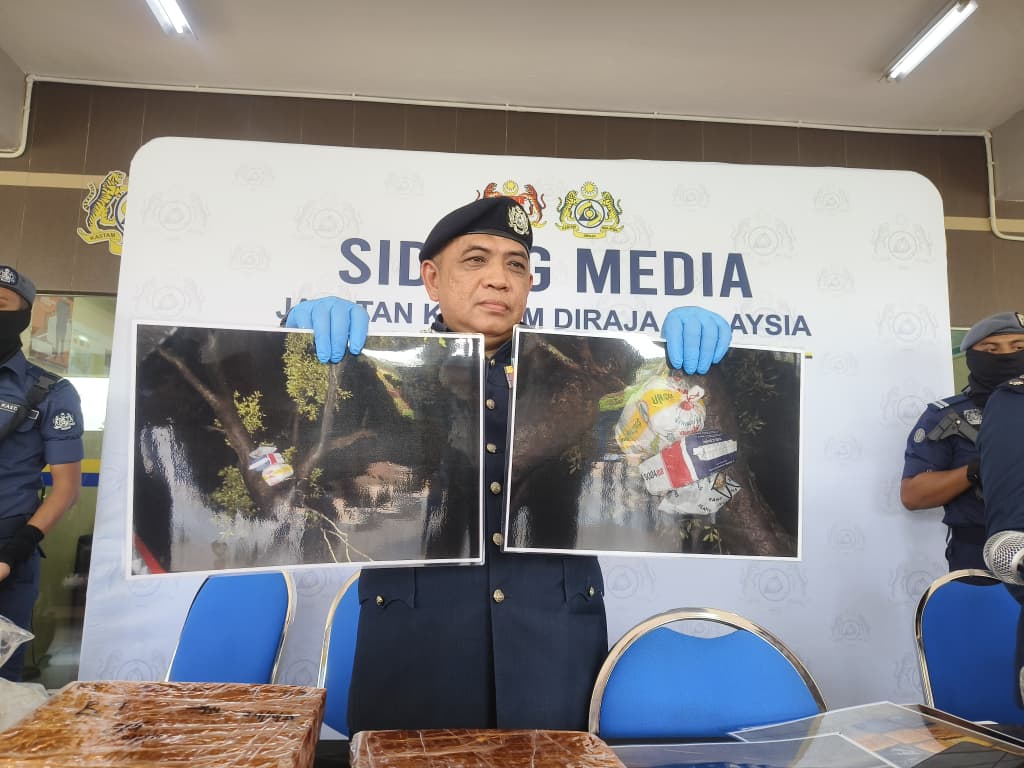 “Kesemua bungkusan itu ditinggalkan di atas pokok dalam keadaan mencurigakan. Pemeriksaan rapi mendapati terdapat 39 ketulan mampat dan 12 bungkusan plastik kedap udara berisi tumbuhan kering dipercayai dadah jenis kanabis.
