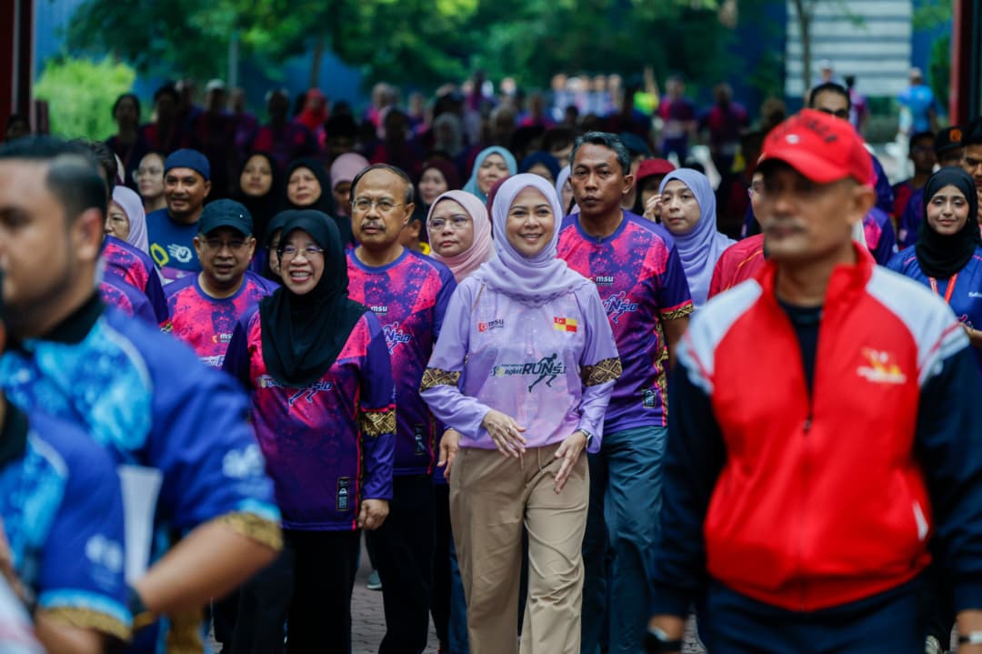 Baginda diiringi Presiden dan Pengasas MSU, Tan Sri Dr. Mohd Shukri Ab. Yajid, Naib Canselor MSU, Prof. Puan Sri Dr. Junainah Abd. Hamid serta pengurusan kanan universiti sepanjang larian itu.